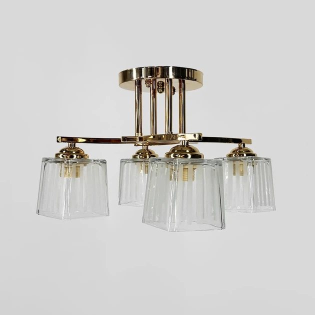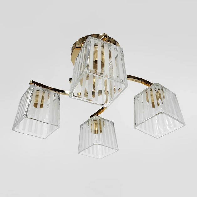 Люстра стельова Light House LNF-17531/4 FGD золото з прозоро-смугастим плафоном