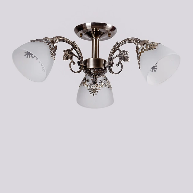 Стельова люстра Light House SH-18212/3 AB 600*600*200 E27 колір бронза, плафони білі візерунком