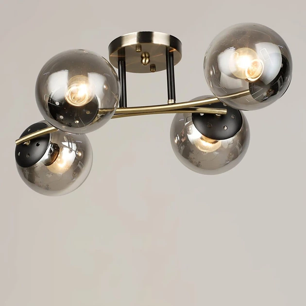 Люстра стельова молекула Light House SRS-20331/4 бронза + чорний, плафони сірі