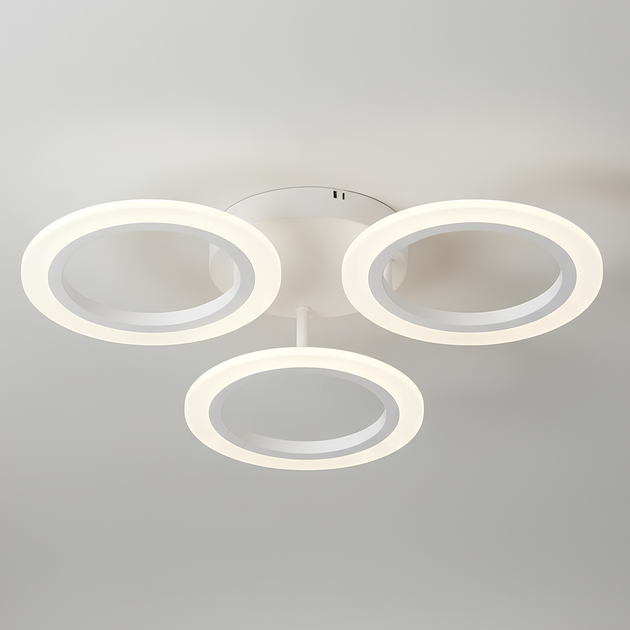 Стельова люстра світлодіодна 42W з пультом Valeso G 2716/3 WT з трьома акриловими плафонами-кільцями 3000–6500K білого кольо