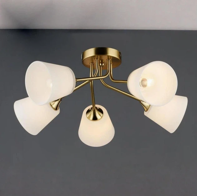 Стельова люстра Valeso на п'ять скляних плафонів під лампу Е27 нікель IP20 N6628/5