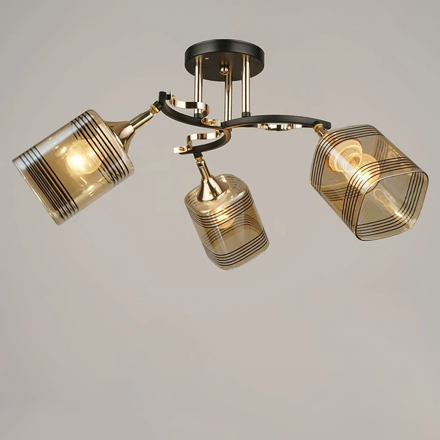 Люстра стельова Light House SRS-19504/3 BK+FGD колір чорний + золото, бурштиновий плафон