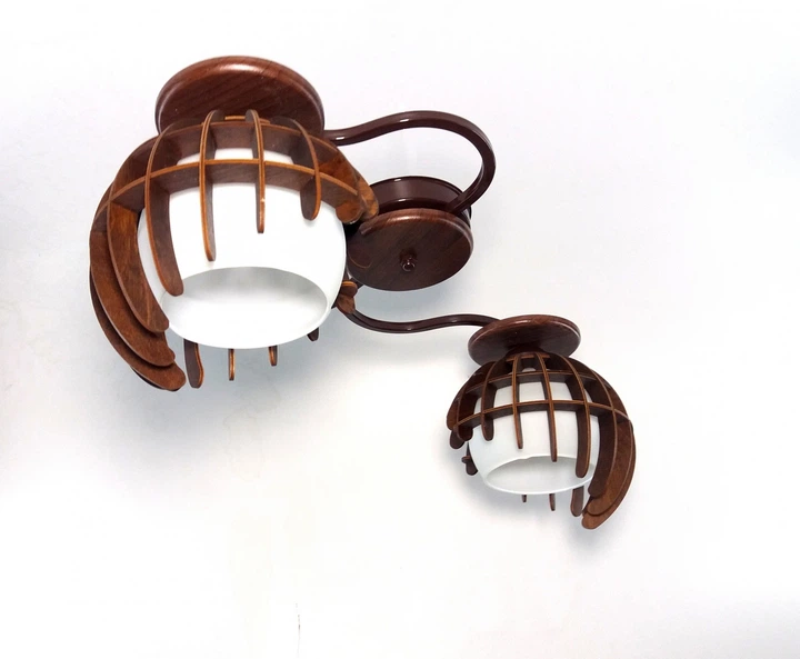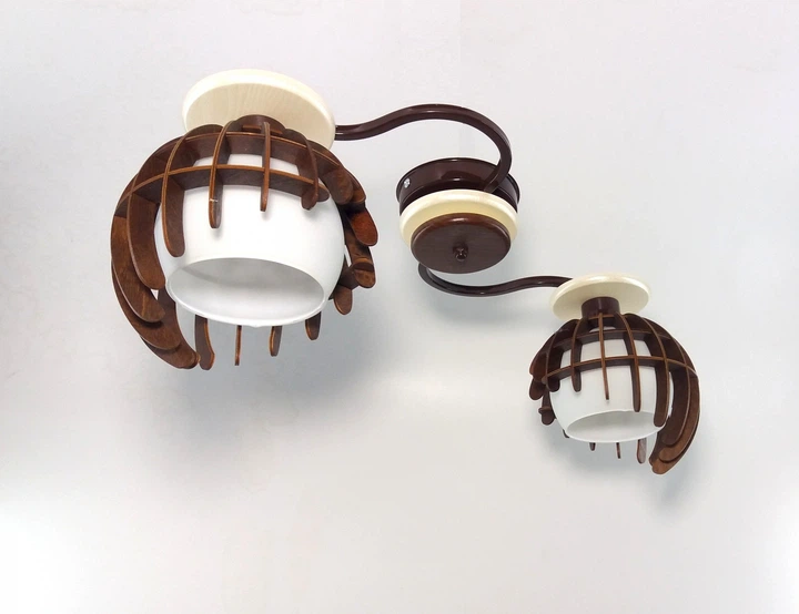 Люстра потолочна дерев'яна Ілюзія/2 коричневая на два плафона