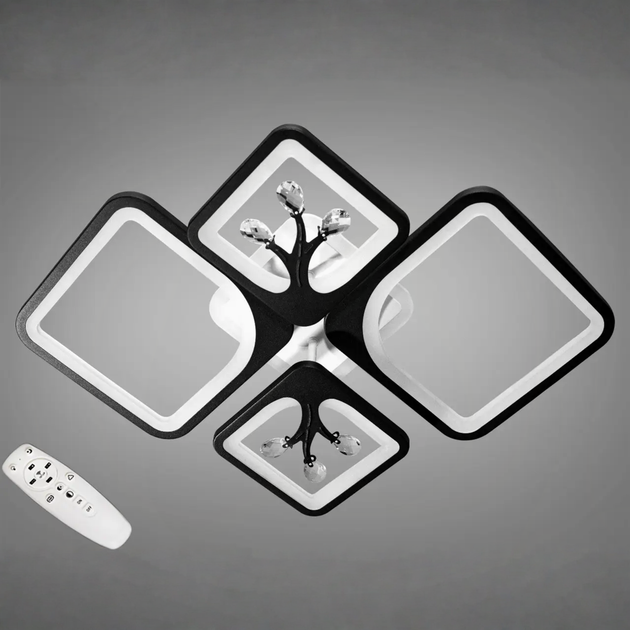 Стельова світлодіодна люстра 100W з пультом Diasha зі скляним декором 3200К-6000К чорна IP20