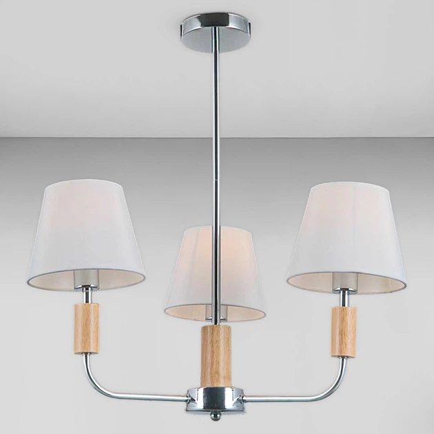 Люстра стельова з абажуром Light House SRS-19956-3 CH хром, білий абажур