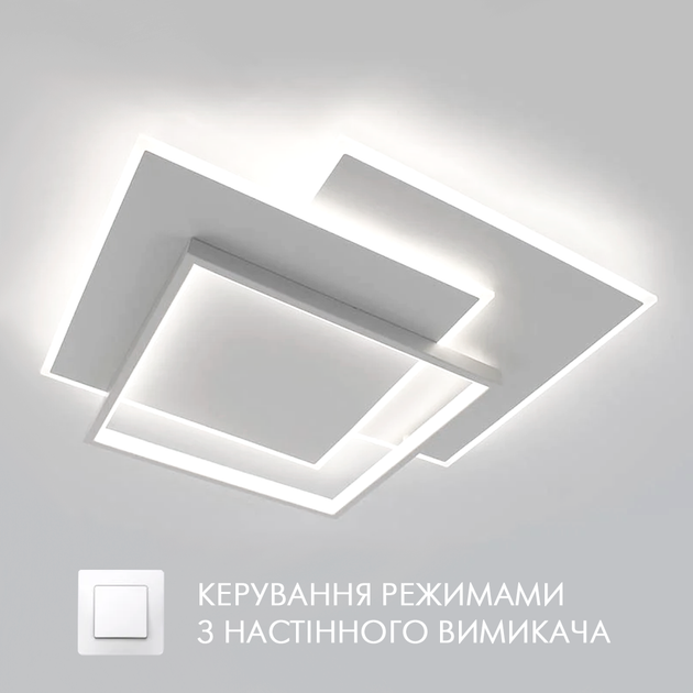 Керована світлодіодна LED люстра Esllse VEGA triple 80W 3S 65Вт ON/OFF "три квадрати" біла 470х470х62мм WHITE/WHITE 220В IP2