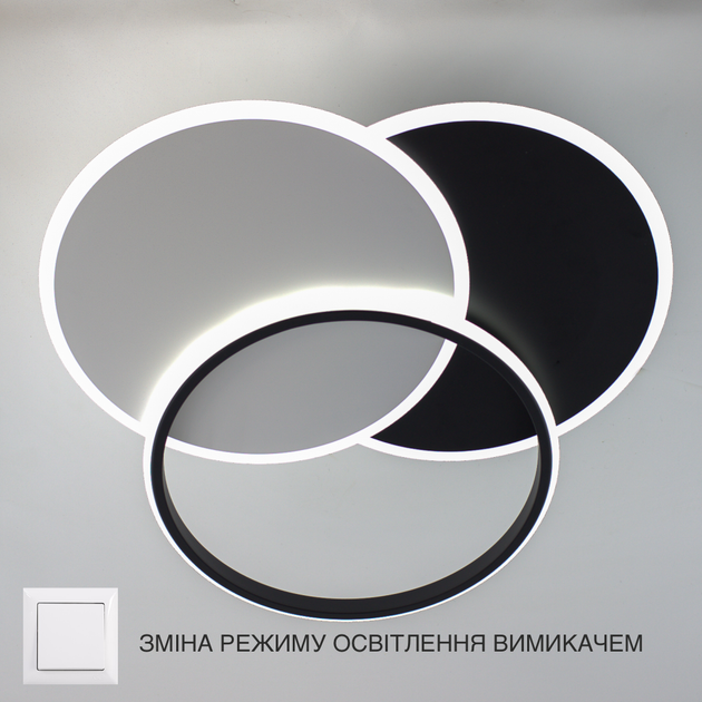 Керована вимикачем люстра світлодіодна VEGA triple 80W 3R ON/OFF 490х60мм Чорно-Біла