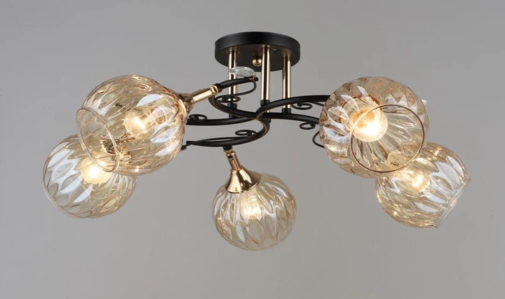 Люстра стельова на п'ять поворотних плафонів, світильник SVET SR-N5008-5 BK+FGD