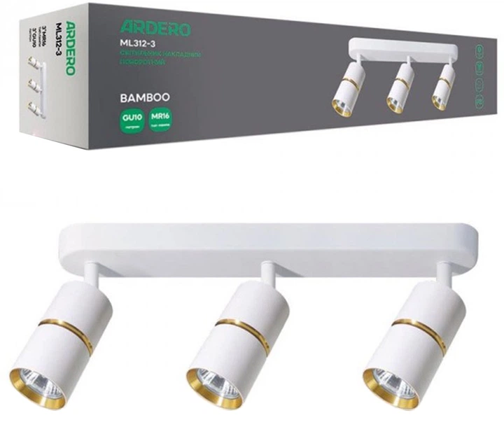 Світильник стельовий накладний поворотний Ardero ML312-3 під лампу MR16/GU10 білий+золото (4820273272357)
