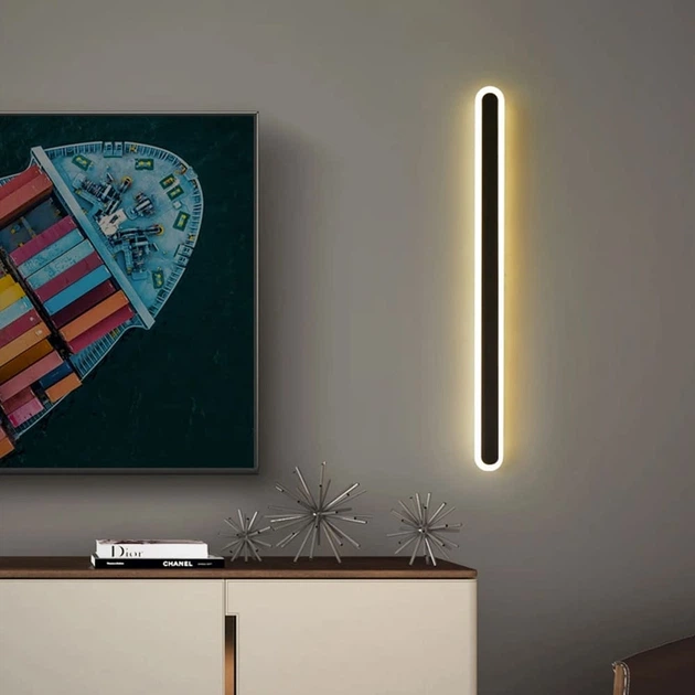 Подовжене чорне бра у металевому корпусі 60 см | Line F | Арт. W010/600 ВК