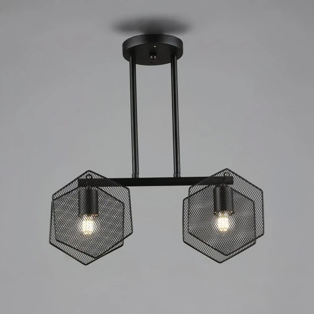 Стельова люстра в стилі лофт Sirius з металевою планкою під дві лампи Е27 чорна IP20 B S2473/2 BK