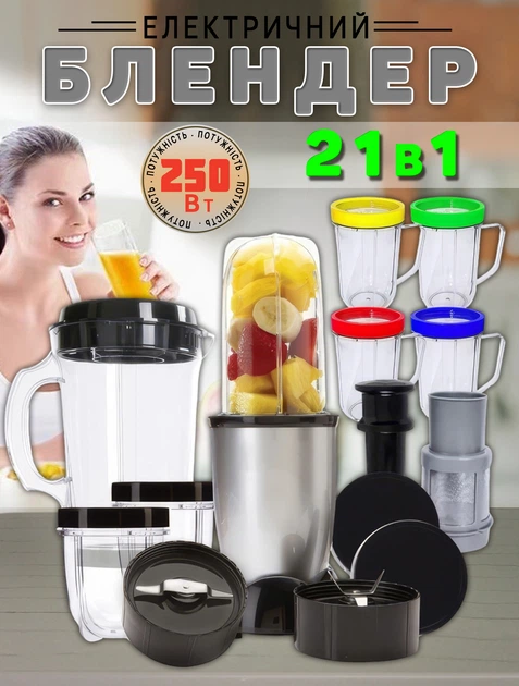 Блендер багатофункціональний набір 21в1 MHZ 250W смузі мейкер, міксер, подрібнювач, 21 предмет