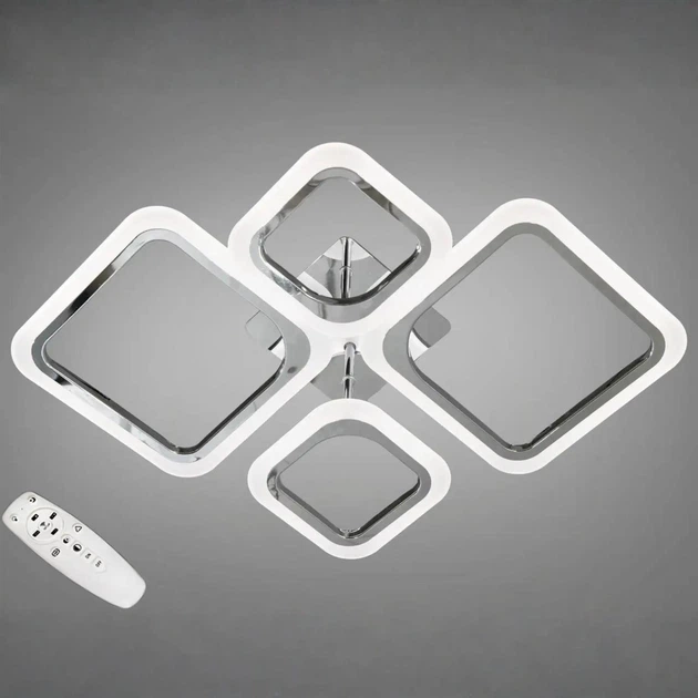 Стельова світлодіодна люстра 52W з пультом Diasha з квадратними плафонами 3200K-6500К хром IP20