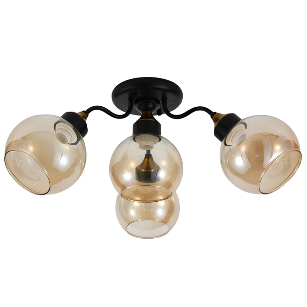 Люстра стельова Sirius L0014-3+1 BK+Wood із чотирма золотистими скляними плафонами під лампи Е27 чорний металевий корпус