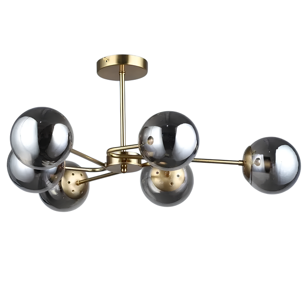 Стельова люстра на шість чорних плафонів куля зі скла під лампи Е27 корпус мідний Svet SR-N36349/6 COP