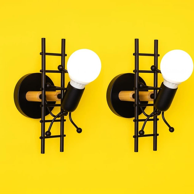 Набір 2 світильника бра чоловічка з драбинкою чорних лофт
