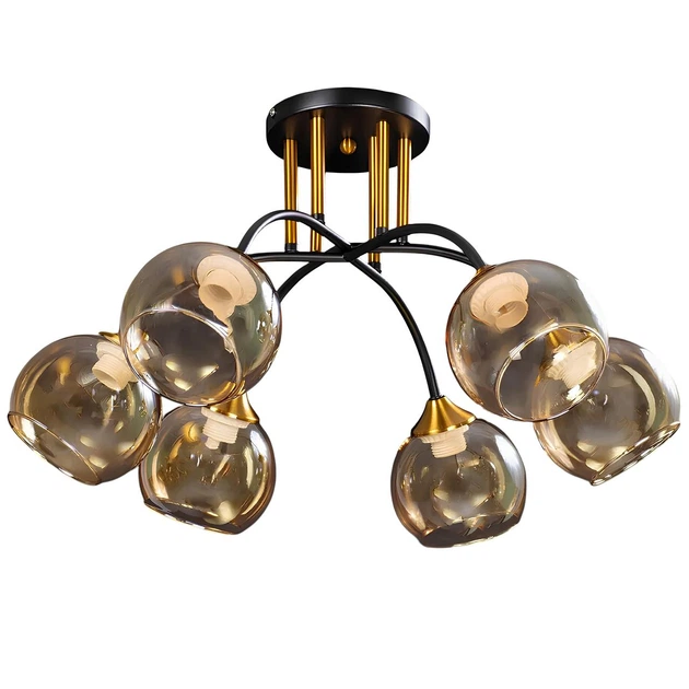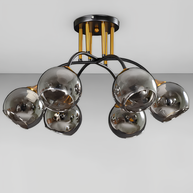 Люстра стельова з круглими чорними плафонами на 6 ламп Е27 каркас чорний/бронза Svet SN-2028-6 BK+DGD