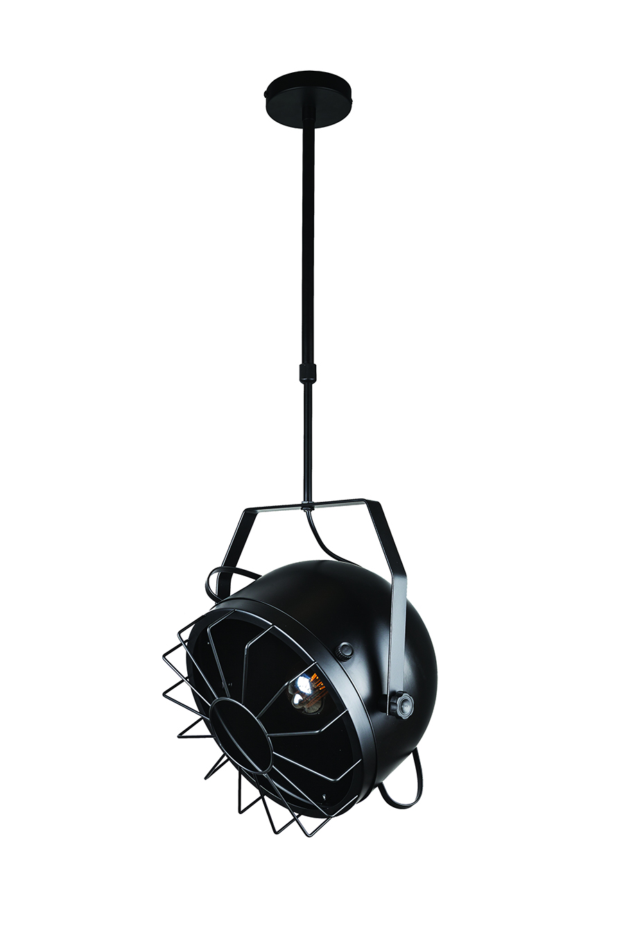 Матеріал люстри: метал Колір люстри: чорний Кількість плафонів - 1 Розмір - 250 мм Розмір телескопічної трубки - 300-600 мм (регулюється) Тип кріплення - стельовий Кріплення до стелі колір - чорний Матеріал кріплення - метал Джерело світла - 1 Е27 лампа Максимальна потужність лампочки 60 Ватт Можливість використання лампи: LED, розжарювання, енергозберігаюча Комплектація лампочками: Немає Тип люстри - підвісна