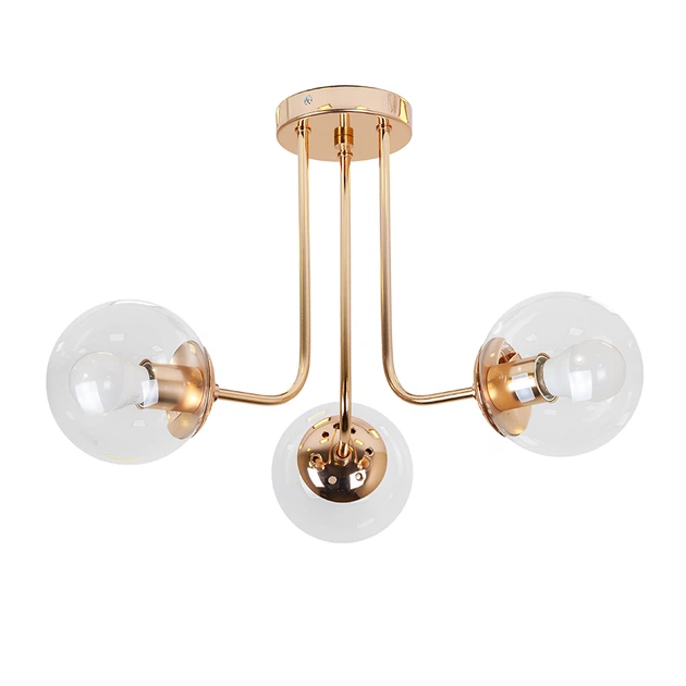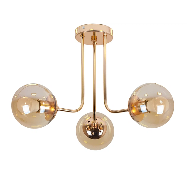 Стельова золота люстра з 3 білими плафонами-кулями "Triple Glow "(52-9903-3 GOLD+WH)
