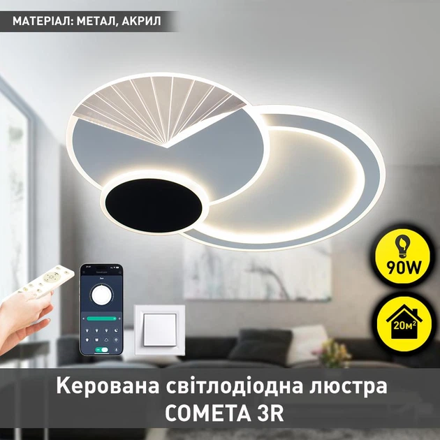 Смарт люстра керована світлодіодна COMETA 3R 90 Вт 540x420x60 мм Бiла ESLLSE