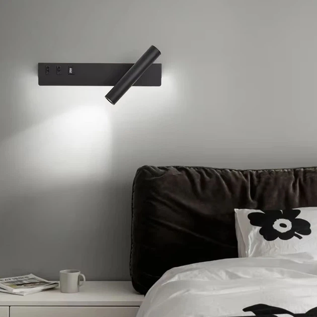 Чорне бра з поворотним спотом праворуч + роз'єм USB Line F | Арт. WJ 028/2 L BK (лівий)