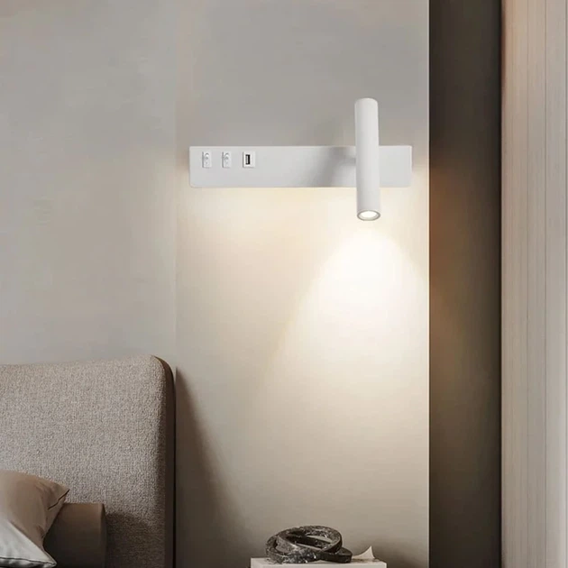 Біле бра з поворотним спотом праворуч + роз'єм USB Line F | Арт. WJ028/2 L WT (лівий) + USB-A