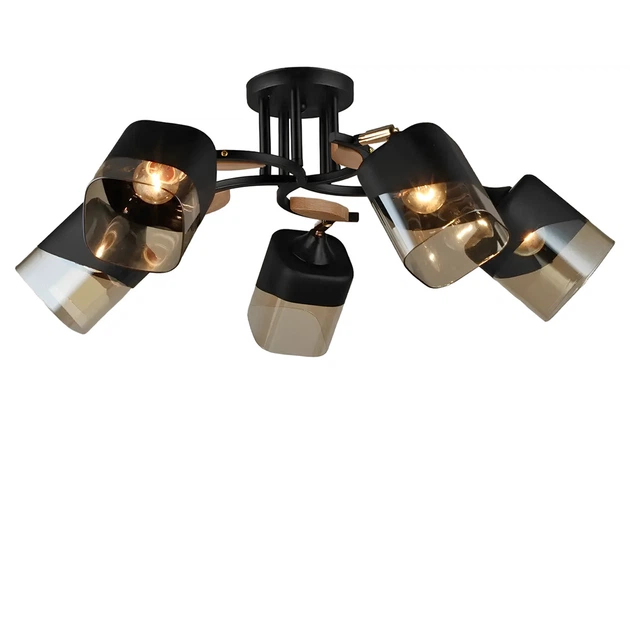 Люстра стельова Light House SR-20295/5 BK+WOOD D660*H260 E27 чорна + дерево, чорний плафон з янтарним