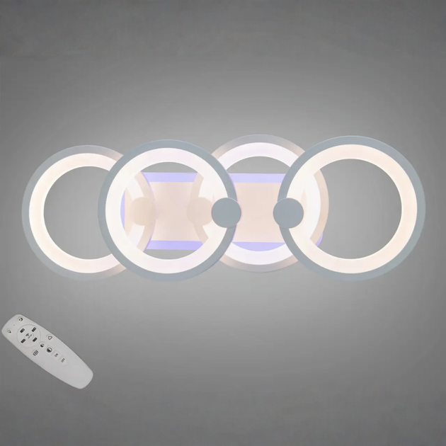 Стельова світлодіодна люстра 65W з пультом Diasha з розсіювачами-кільцями 3200K-6500K біла IP20