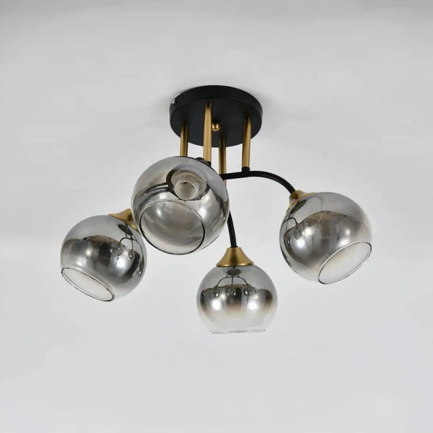 Стельова люстра Sirius на чотири затемнених плафони під лампу Е27 чорна/мідь IP20 DX2028-4 BK+Copper