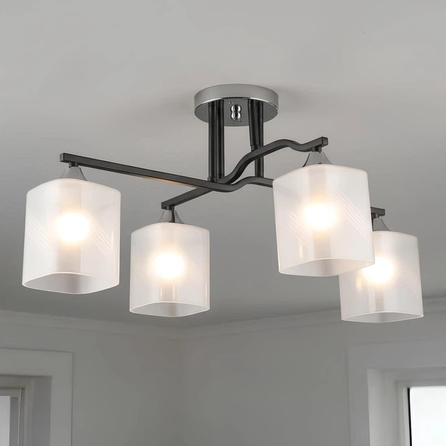 Люстра стельова Valeso B A4456/4 BK+CH з чотирма білими плафонами під лампи E27 на чорно-хромовій основі