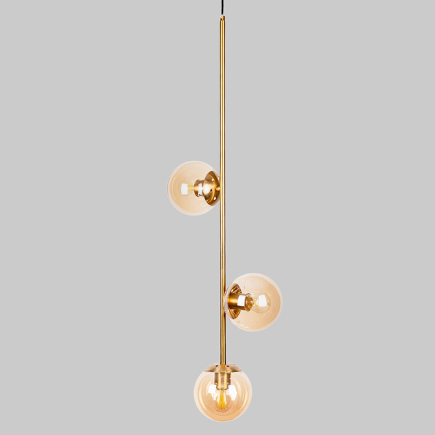 Стельова золота люстра з 3 прозорими плафонами-кулями "Triple Glow "(52-9903-3 GOLD+CL)