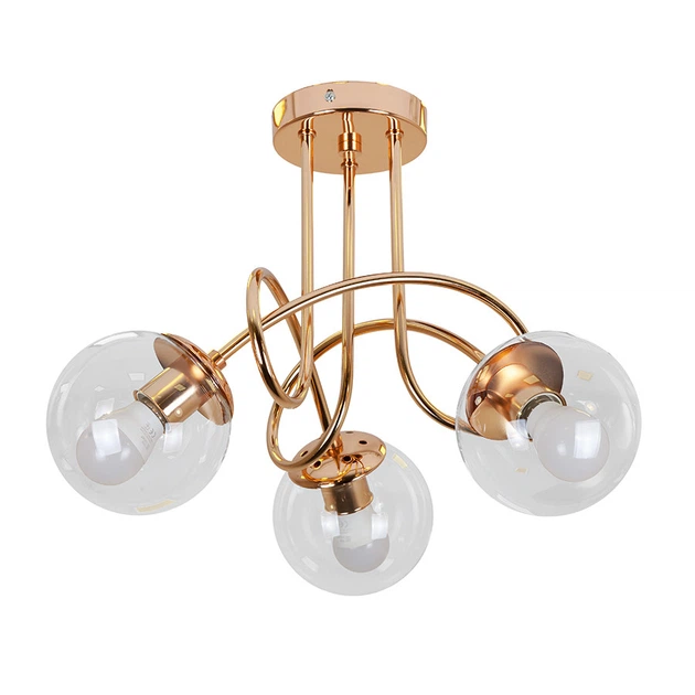 Стельова люстра Levistella на три прозорі плафони під лампу Е27 золота IP20 7529903-3 GOLD+CL