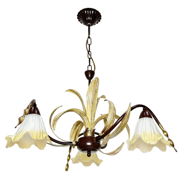 Люстра підвісна N&B light на 3 плафони коричнево/золота Лувр 15103