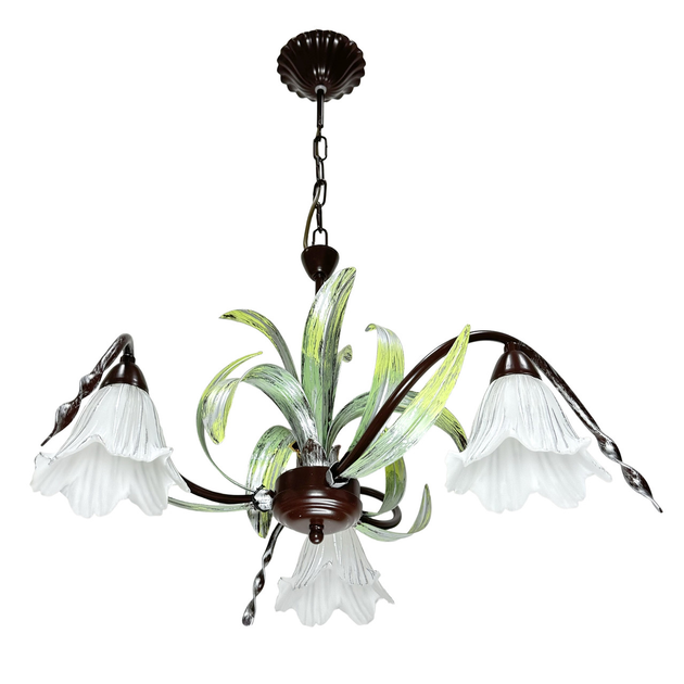 Люстра підвісна N&B light на 3 плафони коричнево/зелена Лувр 15103
