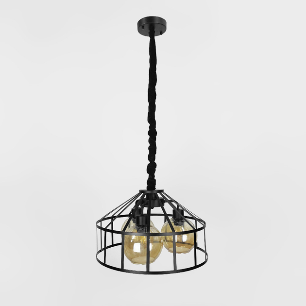 Чорна люстра Лофт на 3 янтарних плафони