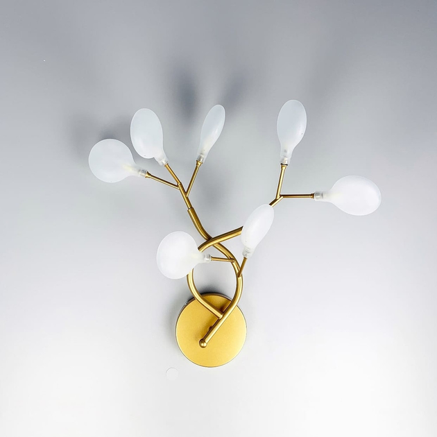Флористичний настінний світильник у золотому корпусі на 7 плафонів