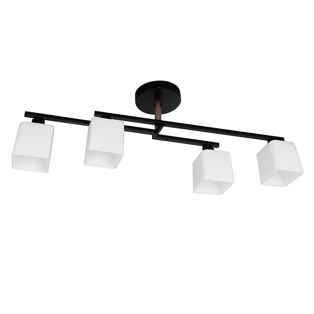 Люстра стельова модерн на 4 плафони з білим матовим склом, чорний метал Sneha (99518696524/4)