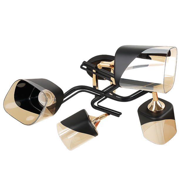 Стельова люстра на 4 плафони поворотна з склом, чорна, лофт під змінні лампочки Sneha (9952605070/4)