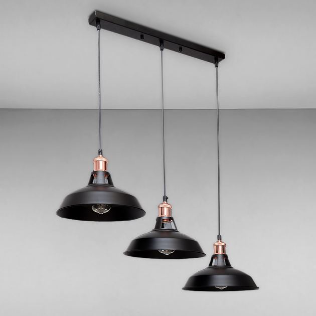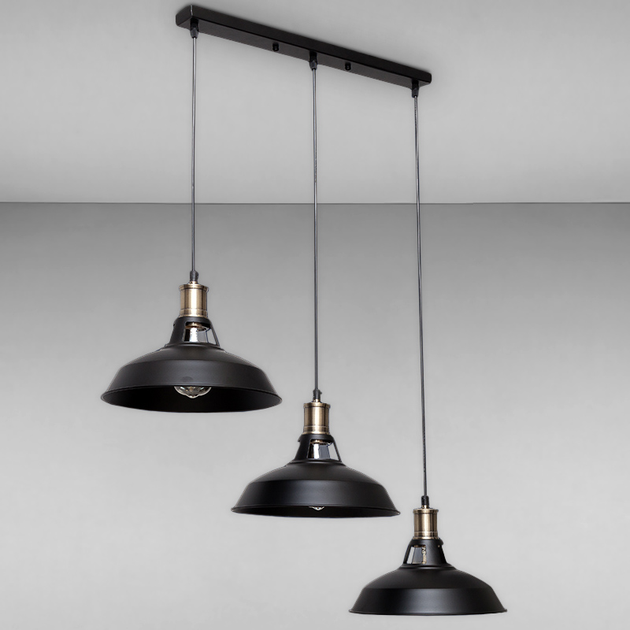 Чорна люстра лофт з трьома плафонами (52-6857F1-3 BK (300))