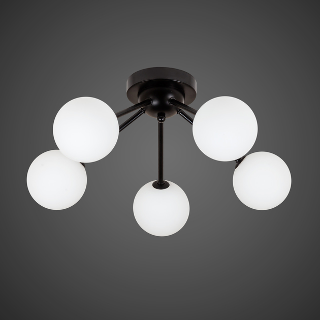 Чорна стельова люстра на п'ять плафонів (61-X1005F-5 BK+WH (120))