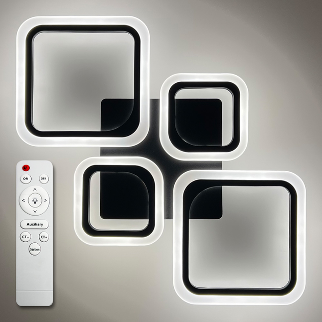 Світлодіодна люстра, що керується Esllse SVEN 3SQ 90W 635x478x75мм чорно-біла