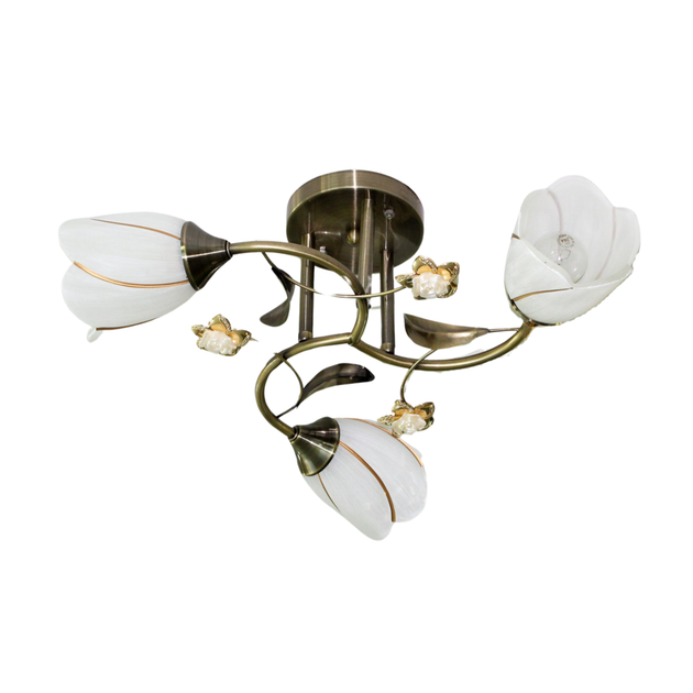 Стельова люстра Sirius з трьома плафонами у вигляді квіток під лампу Е27 бронза IP20 B N1508/3 AB
