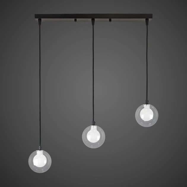 Чорна підвісна люстра з прозоро-білими плафонами 10 см. (61P100F-3 BK+CLWH (500))