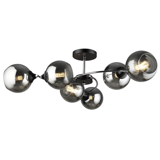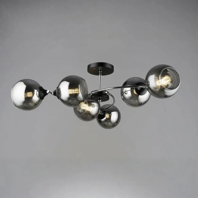 Стельова люстра Valeso на шість затемнених плафонів під лампу Е27 чорна/хром IP20 B K2288/6 BK+CH