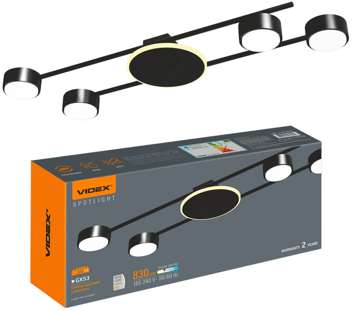 Світильник VIDEX під лампу 4xGX53 накладний з підсвіткою чорний VL-SPF21B-BB