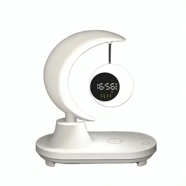Світильник нічник акумуляторний з бездротовою зарядкою для телефону Bluetooth колонкою годинником регулювання яскравості (48