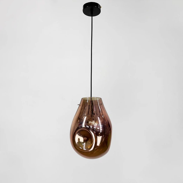 Підвіс із мятим видовженим скляним плафоном у кольорі рожеве золото