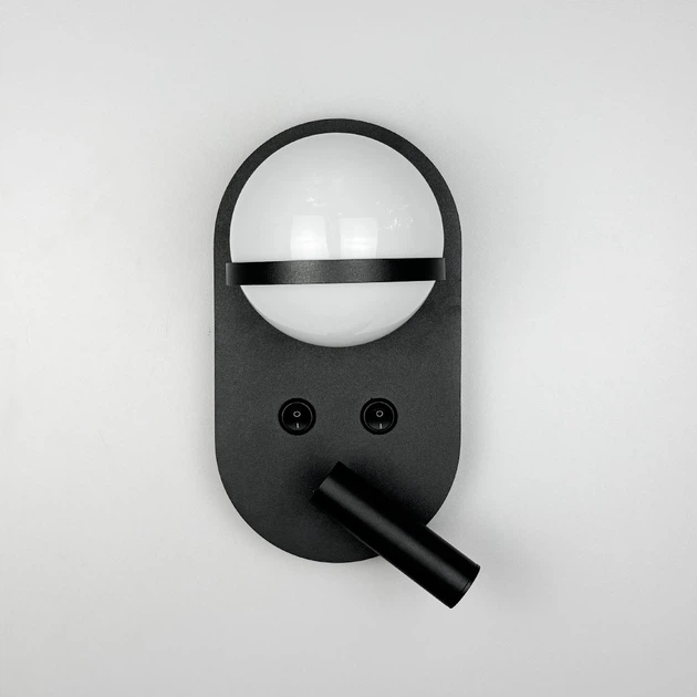 Бра на 2 вимикачі у чорному корпусі із білим плафоном та спотом