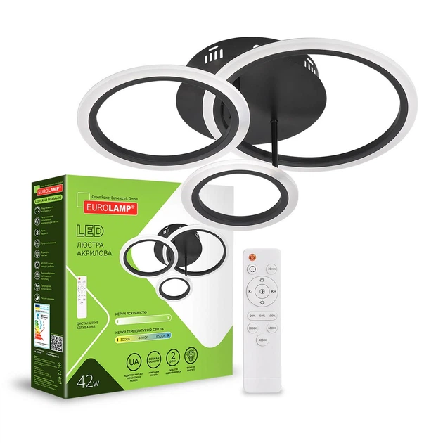 Люстра світлодіодна акрилова LED EUROLAMP кругла M22 42W 3000-6500K чорна (LED-LR-42-M22(black))