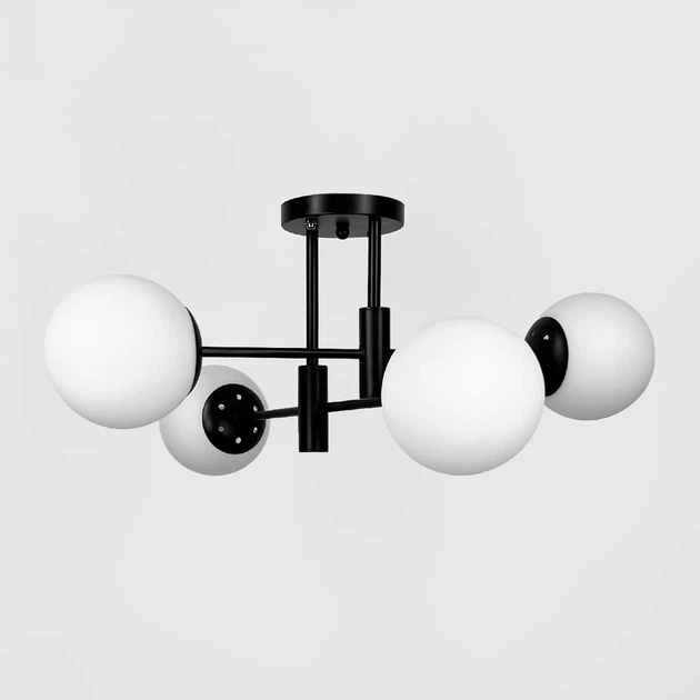 Чорна стельова люстра на 4 білих плафонів 55 см | Line F | Арт. 81188/4 BK+BK+WT